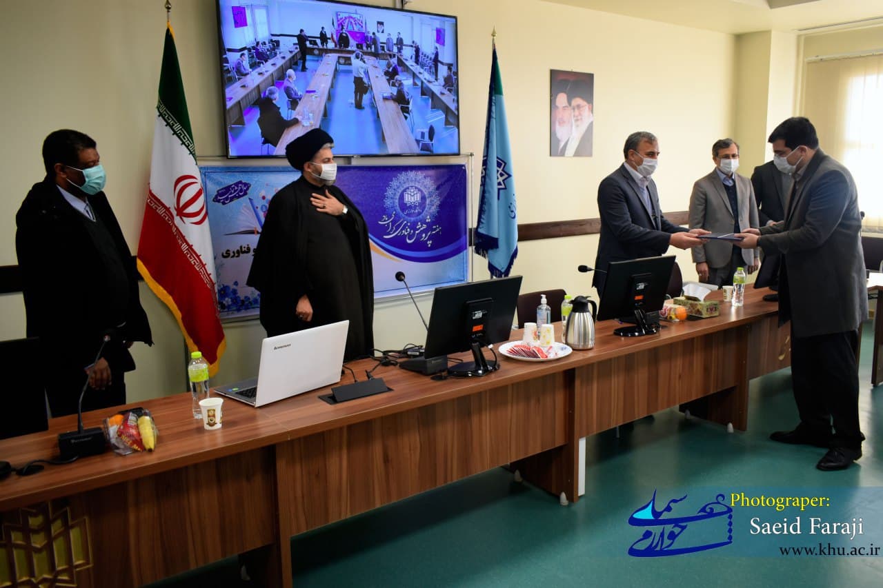 این مراسم که جهت رعایت پروتکل های بهداشتی با حضور محدود افراد منتخب به صورت حضوری برگزارشد و مراسم به صورت زنده از طریق سامانه آموزش مجازی و آپارات دانشگاه پخش شد.