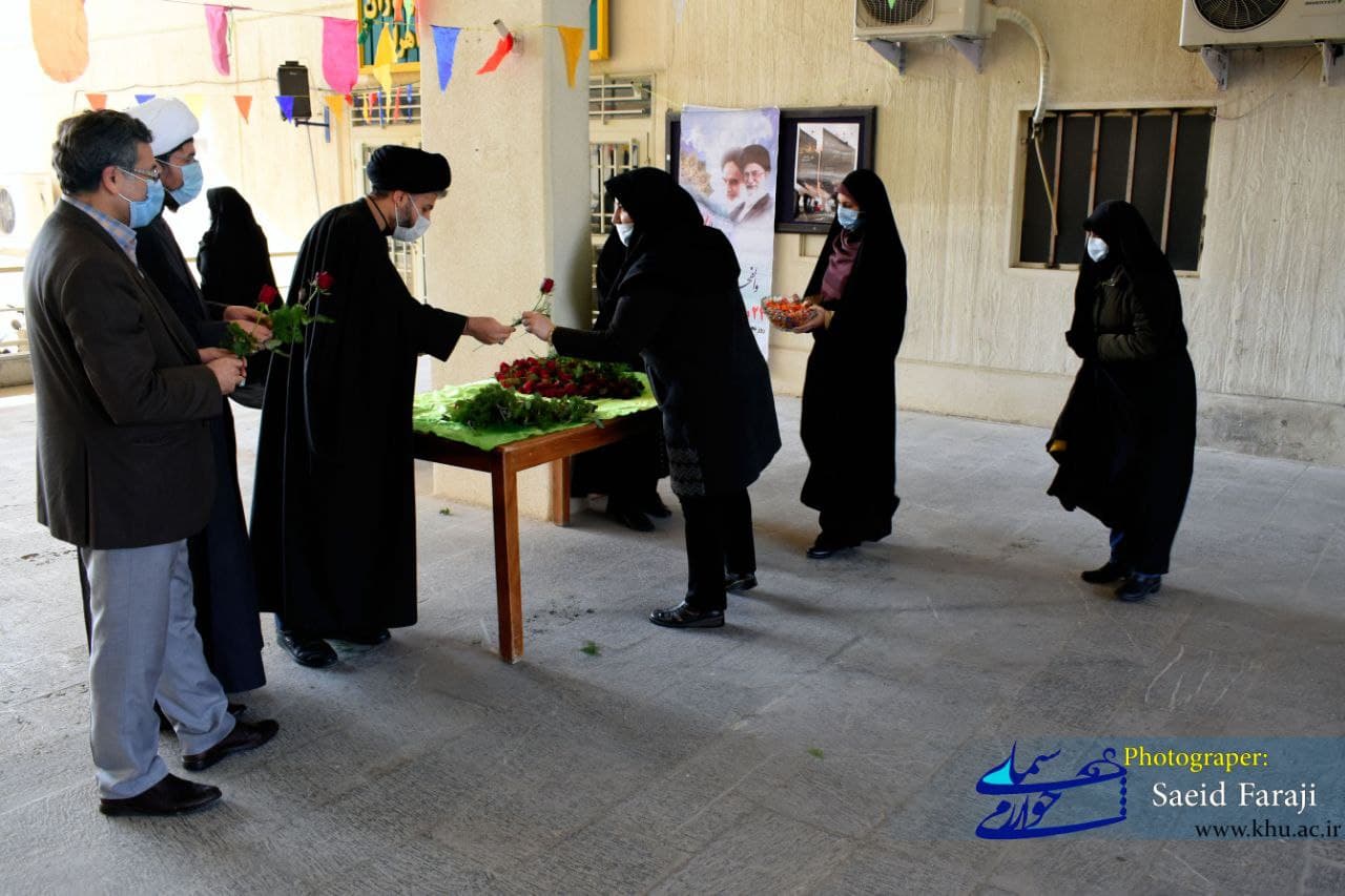 به گزارش روابط عمومی دانشگاه خوارزمی، امسال مراسم بزرگداشت مقام زن و روز مادر در شرایط کرونایی متفاوت برگزار شد. حجه الاسلام هاشمی مسئول نهاد نمایندگی مقام معظم رهبری در دانشگاه، دکتر عبدالهی مدیر حوزه ریاست و روابط عمومی و زهرا رئیسی نماینده شورای صنفی کارکنان ۱۵ بهمن ماه ۱۳۹۹ با حضور در میان همکاران با اهدای یک شاخه گل این روز را به بانوان دانشگاهی در کرج تبریک گفتند.