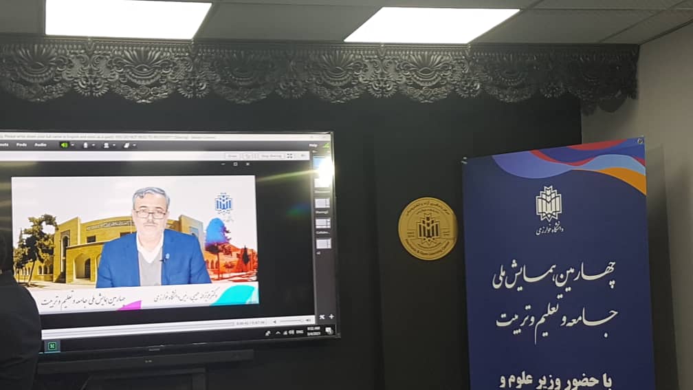 رئیس دانشگاه در پایان گفتند: بنابراین تحول در دانشگاه ها در فضای مجازی می تواند شامل راهبردها و اقدامات هماهنگی باشد که از طریق نیروی انسانی مسلط بر فن آوری، با توجه به فرهنگ استفاده از فضای مجازی آنها را قادر سازد تا مدلهای نوین تحول دانشگاه را در راستای رسالت، ماموریتها و اهداف طراحی نمایند. بنده در این میان اشارهای به دیگر مسائل دانشگاه مانند پژوهش، فرهنگ و ارتباط با جامعه و صنعت نداشتم زیرا در سالی که گذشت محوری ترین مسئله و دغدغه فرایند یاددهی- یادگیری بود. خوشبختانه، محوریت قرار دادن فضای مجازی، دانشگاه و جامعه در چهارمین همایش جامعه و تعلیم و تربیت میتواند علاوه بر تکمیل دریافتهای ما از آموزش در فضای مجازی به ابعاد دیگری چون پژوهش و ارتباط دانشگاه با صنعت و جامعه نیز آگاهی بخش و یاری رسان باشد و فانوسی روشنگر برای ترسیم سناریوهای آینده دانشگاه های کشور. جالب توجه است در این دوره نگاه بین رشته ای چهارمین همایش به طور جامع الاطرافی تمامی رشته های جبهه نخست مجازی شدن دانشگاه ها را در نظر گرفته است تا جایی که از بعد فرهنگی نیز در میزگردهای تخصصی بحث هویت را از منظر تربیتی-روانشناسی، اجتماعی؛ سیاسی-حقوقی-اقتصادی، هوش مصنوعی، اسلامی و فرارشته ای مورد بررسی قرار داده است، که همگی در راستای نیازهای امروز دانشگاه خوارزمی و دیگر دانشگاههای کشور است.