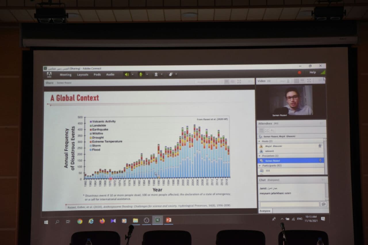 آقای دکتر علیرضا شهیدی ریاست سازمان زمین شناسی و اکتشافات معدنی کشور، ضمن تبیین جایگاه علوم زمین و عملکرد سازمان زمین شناسی، وضعیت موجود و برنامه های آینده این سازمان را تشریح کردند. سخنران کلیدی همایش آقای دکتر سامان رضوی عضو هیات علمی دانشگاه ساسکاچوان کانادا و عضو کارگروه امنیت آب بودند که آخرین دستاوردهای مدیریت جامع منابع آب را در مقیاس جهانی با در نظر گرفتن تمامی ذینفعان به همراه الگوهای موفق معرفی کردند.