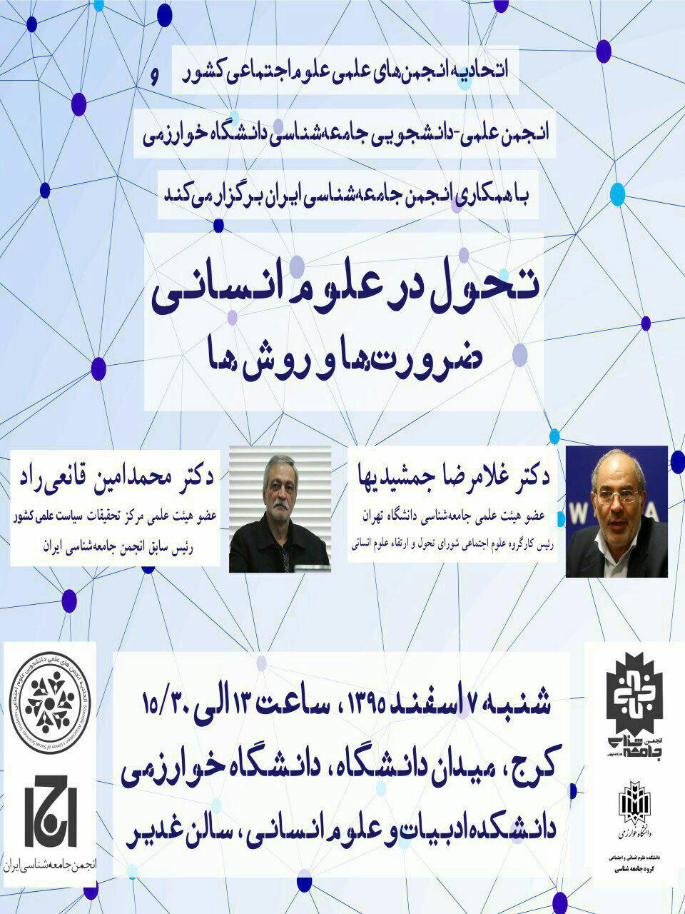 اتحادیه انجمن های علمی علوم اجتماعی سراسر کشورو انجمن علمی جامعه‌شناسی دانشگاه خوارزمی با همکاری انجمن جامعه شناسی ایران برگزار می‌کنند: