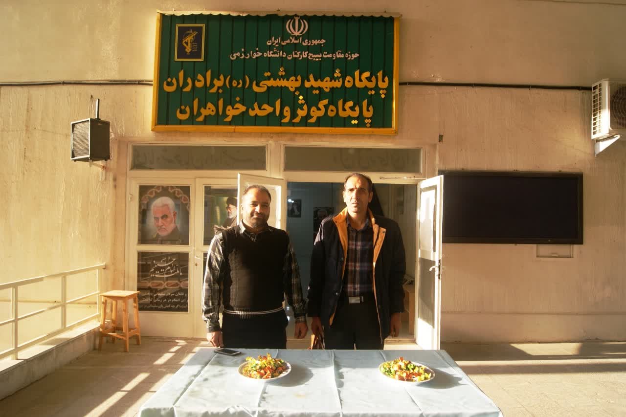 به گزارش روابط عمومی دانشگاه خوارزمی، مراسم گرامیداشت هفته بسیج در روز یکشنبه ۶  آذرماه ۱۴۰۱ در پردیس کرج دانشگاه برگزار شد. در این مراسم از دانشجویان و همکاران و اعضاء هیئت علمی، با شیرینی و شکلات پذیرایی به عمل آمد.